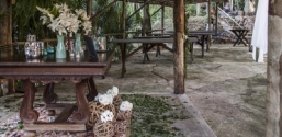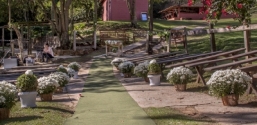 Temos um espaço integrado a natureza e com decoração rústica para realização de casamentos, aniversários e confraternizações.